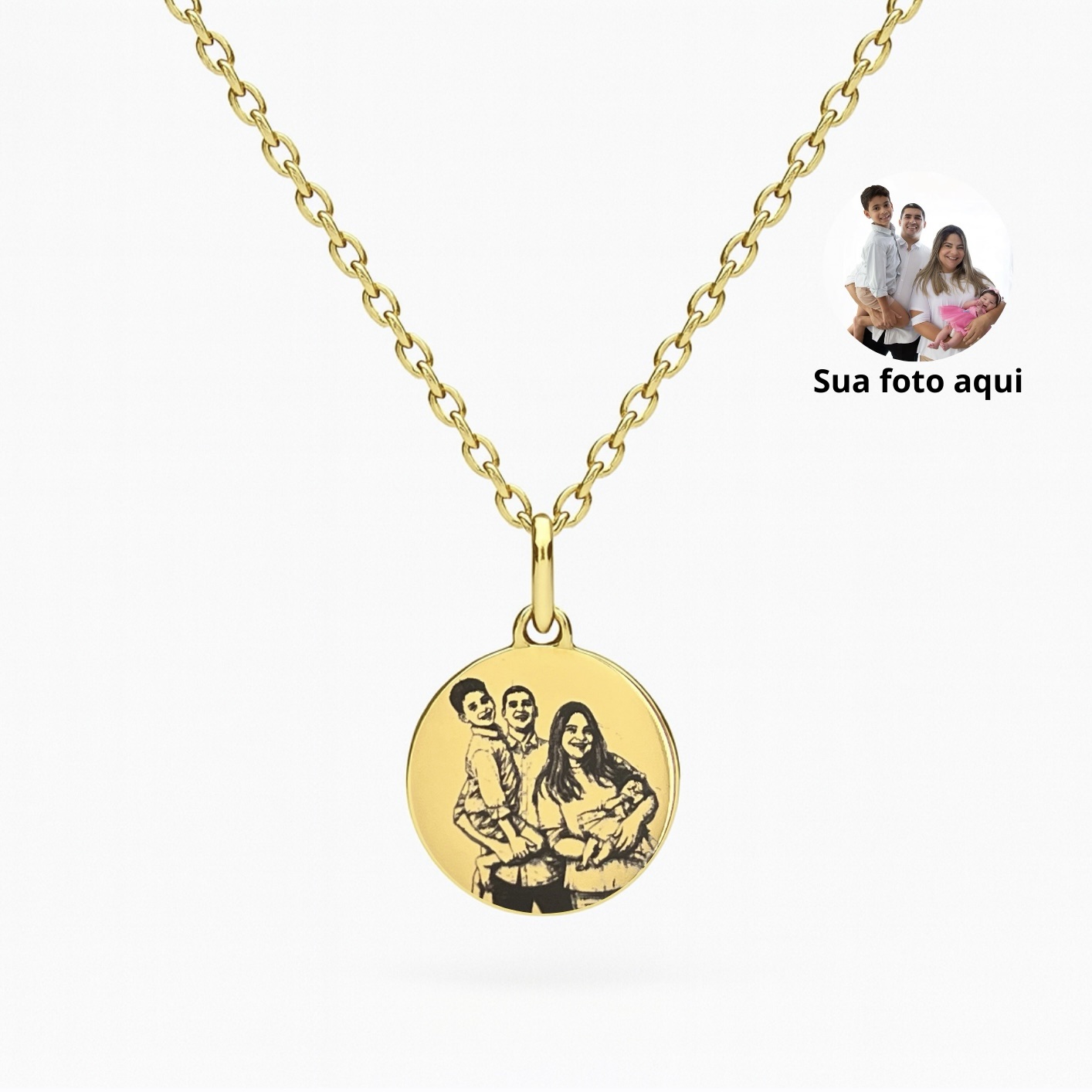 Pode ser gravada com foto e, no verso, nomes, datas ou pequenas frases.